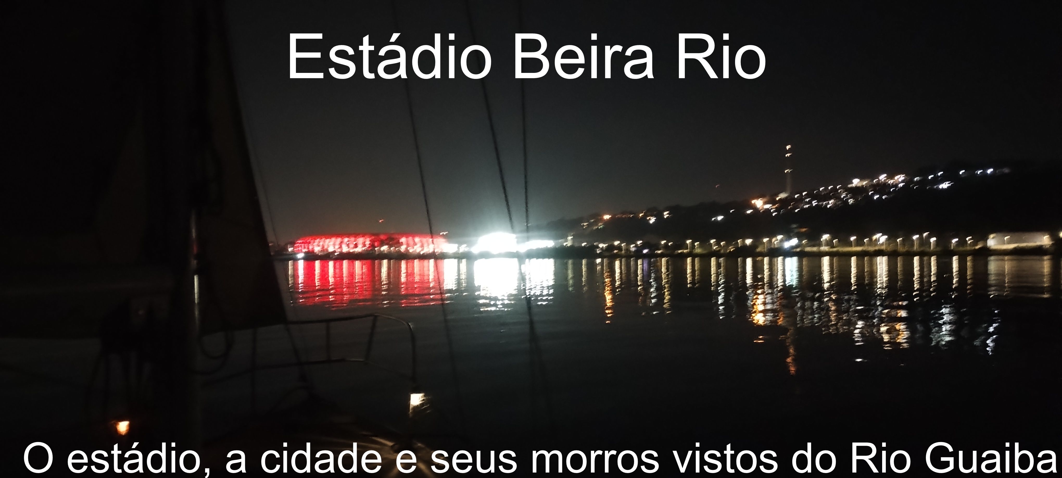 O estádio, a cidade e seus morros vistos do Rio Guaiba
